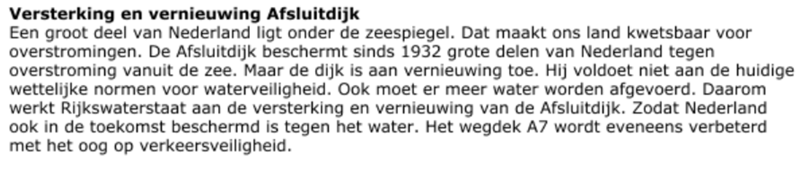 Op deafsluitdijk.nl kun je meer informatie vinden over de werkzaamheden. Volg ons ook via Facebook, Twitter, LinkedIn en Instagram. Heb je vragen, mail dan naar loket@deafsluitdijk.nl of bel met 0800-6040.